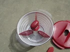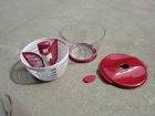 This KitchenAid Salad Spinner is a must-have for any kitchen. It comes in a vibrant red color and includes a lid and three dividers, making it easy to spin and store salads and other foods. The spinner has a large size, with a 10.5" diameter and 7" depth, and is made of durable plastic that is easy to clean. The KitchenAid Salad Spinner is perfect for preparing and serving salads, as well as other foods like vegetables and fruit. Its features include easy clean, making it a convenient addition to your kitchen. This salad spinner is a great gift for anyone who loves cooking and serving delicious salads. Like new
