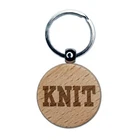 Knit Fun Text Engraved Wood Round Keychain Tag Charm