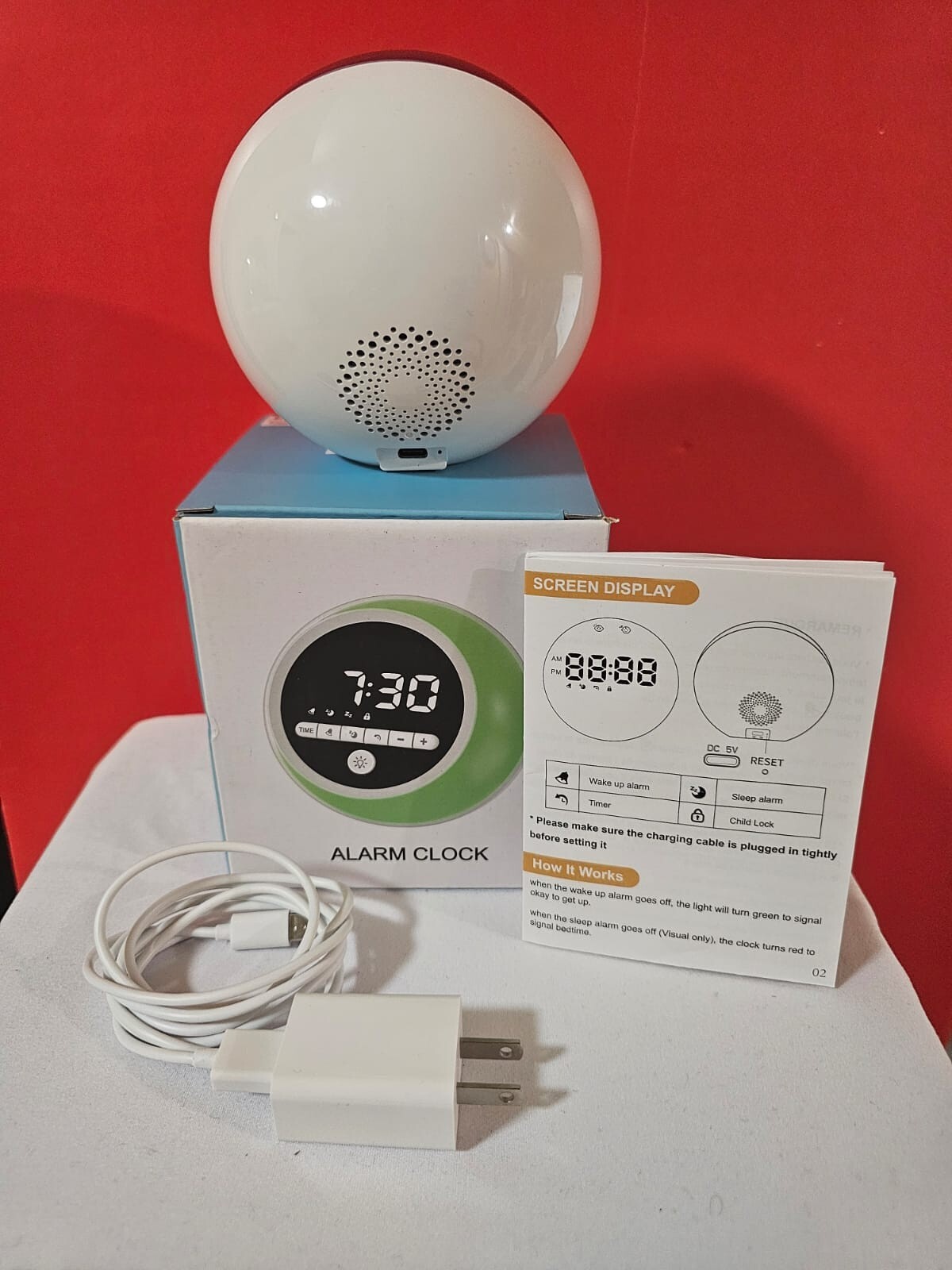 Description: Digital Alarm Clock with LED Wake-Up Light – USB Powered – Touch Control – Timer & Sleep Mode Wake up naturally and fall asleep peacefully with this modern LED Digital Alarm Clock . Designed with touch-sensitive buttons and a soft wake-up light, this clock helps you start your day calmly. Perfect for kids, adults, or anyone seeking a minimalist, functional bedside companion. 🕒 Product Features: LED display with adjustable brightness Touch-sensitive control buttons Wake-up light turns green when the alarm goes off Sleep aid mode turns the light red USB powered (cable and adapter included) Timer and child lock functions Compact and stylish design Ideal for bedrooms, desks, and kids' rooms Simple to use and gentle on your mornings — upgrade your bedside with this smart and modern alarm clock.