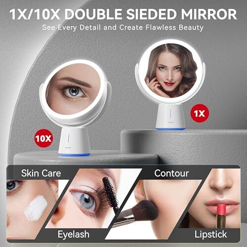 This mirror is a game-changer for makeup and skincare! The dual-sided 1X/10X magnification is perfect for precision work, and the 10 brightness levels let me customize the lighting. Love that it’s rechargeable and rotates 360°—so convenient for any angle. Super sturdy stand and crisp, clear reflection make it totally worth it. Highly recommend!
