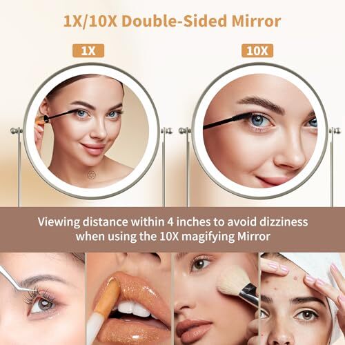 Return Policy Fast Delivery Trusted seller Lighted Makeup Mirror with Storage Tray 3 Lighting Modes, Rechargeable, 1X/10X Magnification Dual Side, 360° Swivel, Dimmable Vanity Cosmetic Personal Makeup Mirror Great Gift (Nickel) Product Description ?[Metal Lighted Makeup Mirror with lignts and Storage] Integrated storage compartment for organized placement of makeup essentials. Keep cosmetics easily accessible, streamlining your makeup routine. The storage compartment is designed to hold small accessoties items, such as hairpins, hair rope, brushes, lipsticks, eyeliners, or other ornaments. It's easy to organize and quick access to various daily products. ?[3 Color Lights and Stepless Brightness] Easily adjust the brightness levels of each lighting mode with a simple touch. Allows customization for optimal lighting tailored to to match different environments or makeup requirements, such as dating, festival, any party. Three color modes catering to various makeup preferences switch easily between warm, cool, and natural light to match different makeup needs. ?[Rechargeable Power Supply] Powered via USB charging cable for unparalleled convenience, compatible with various devices offering versatile and convenient usage options. The mirror features 2000mAh battery that s prolonged usage on a single charge. Provides reliability and convenience, making it suitable for daily use without worrying about power interruptions. ?[Adaptability with Steadiness] The 8-inch round glass mirror with 360°rotation capability provides complete flexibility in positioning for optimal angles.Effortlessly adjust the mirror to achieve the perfect view from any direction. Enhanced stability and safety with a metal stable base and a secure non-slip pad. Prevents accidental slips or movements, ensuring a steady and reliable setup. ?[Gift Idea for Her] High-quality 10x magnification for precision in detailed makeup application. Perfect for achieving flawless results in intricate tasks like eyeliner or eyebrow grooming. An excellent gift choice for women, combining functionality, style, and practicality—perfect for birthdays, holidays, or special occasions. Shipping Returns Payment Shipping Shipping is FREE to all addresses other than APO/PO boxes in the lower 48 states. All our stock ships from US-based warehouses. Shipped via USPS or UPS (depending on location and package weight) Unless stated otherwise, all orders will ship within 24-72 hours of your payment being processed. Check our feedback to see the great reviews of FAST shipping we offer. Returns Seller does not accept returns Payment We currently accept payment via eBay managed payments only. Once payment is cleared, we will dispatch your shipment within 1-3 business days. Please refer to the "Shipping" tab for more information regarding shipping speed to your destination.