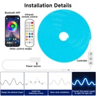 16.4ft RGB LED Neon Lights 【High Brightness No Dark Spot Neon Strip】 neon lights uses denser beads per meter and improves the neon transmittance design to make this strip brighter, softer and smoother than ordinary LED strips without dark spots, which allows you to experience a brighter and smoother RGB lighting atmosphere without hurting your eyes. 【Sync Music and Diverse Control Methods】The neon rope lights is different from ordinary rope lights. It has a built-in high sensitivity microphone and the color can change with the music. You can control the music mode of the light rope at any time with the mobile app, remote control and light rope button, so that you can enjoy the happiness brought by the music more. 【Waterproof Safety Rope Lights】The neon strip is designed with waterproof silicone on the outside, which makes the waterproof rating up to IP67.Using 24V safe voltage power supply to reduce the risk of electric shock. Let you use neon strips to create light atmosphere without worrying about the risk of short circuit or electric shock caused by rain.(Controller is not waterproof) 【DIY Neon Rope Lights】This light strip is made of soft and waterproof silicone material, flexible in shape within 120 degree bending range, you can bend it into any shape you like with the equipped screws and clips. Bring you a unique DIY lighting experience. 【Multi-Application】LED rope lights is not only limited to indoor scenes such as bedroom, living room, kitchen, game room, etc., but also can be used in outdoor scenes such as house, patio, RV, garden, party, etc. The excellent waterproof performance makes it has more application scenarios for you to discover.