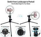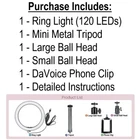 Why should you choose the DaVoice 10“ Ring Light with Stand: 10" LED Ring Light with Tripod Stand - This DaVoice ring light comes with a metal desktop tripod stand, our professional cell phone holder and two adjustable ball heads; Great help when you need extra light for make up, taking photos, making videos, reading books, and live streaming! This ring light includes 120 bright LED bulbs, more than many other ring lights. Can also be mounted on any large standard tripod (not included). 3 Light Modes with Adjustable Brightness - Colors lighting modes: White (Cool), Natural Light, and Warm Light. Each lighting mode has 10 adjustable brightness levels to meet your different needs. Super Secure Hold for Any Cell Phone - Has built-in top grip, nice thick foam bottom cushion to protect phone; More sturdy build holds larger phones; does not scratch or leave marks on the device; Screen is untouched by the phone tripod mount holder. Universal Phone Holder - The phone clip can be extended to 3.62" and it is compatible with most smartphones with or without a case, such as iPhone models 12, 12 Mini, 12 Pro, 12 Pro Max, 11, 11 Pro, 11 Pro Max, 10, X, XS, XS Max, XR, SE, 8, 8 Plus, 7, 7 Plus, 6S, 6S Plus, 6, 6 Plus, 5S, 5C, 5, 4s, 4 and Samsung Galaxy S21 Ultra 5G, S21 Plus, S21, S20, S20 Plus, S20 Ultra, S10, S10 Plus, S10 5G, S10, S9, S9 Plus, S8, S7, S6 and S5 and other smartphones. USB Powered - The USB cable can be used with multiple devices, such as USB charging cubes, mobile power banks, Desktop PCs and Laptops. You will be able to enjoy this LED ring light throughout your office or home with flexibility. 360° Rotation Angle for ring light - The adjustable tripod head allows you to find the perfect angle to light your subject, makes your photograph or live streaming easy. Ring Light Specifications: Max Power: 10W / 5V Power Source: USB Cable (charging cube not included) Diameter: 10 inches Illuminance: 20~1000 Lumens Color Temperature: 3000K Warm, 4000K Natural Light, 5500K Cool White Light LED Quantity: 120 LED Lights Light Angle: 180 degree angle with rotation of 360 degrees Ball Head Specifications Designed to fit: Cameras, Tripods with a 1/4" Standard Screw Compatibility, Most Cell Phone Tripod Mounts. Item Type : 360° Swivel Mini Ball Material: Aluminum Alloy + Hard Plastic Knob & Top with Cushion Pan: 360 degree Ball Head weight: 2.5oz Ball Head Screw Type: 1/4" screw thread Ball Head Size: 2 inches tall Phone Adapter Features : Premium quality plastic and reinforced rubber with high durability Rotating adapter for landscape (horizontal) or portrait (vertical) use Soft foam bumper backing Stretchable spring tension arms that hold onto your phone Lips that prevent your phone from sliding out of the adapter Very effective tool for taking Selfies. Perfect hands-free solution to recording videos with your phone. Avoid frustration when taking Selfies or vlogging by using this tripod for iPhone, as you will find the perfect position for your phone.