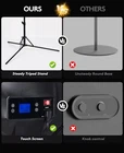 Menu 1. We require immediate payment. 2. We currently accept payment via eBay managed payments only. 3. Once payment is cleared, we will dispatch your shipment within 1-3 business days. Please refer to the "Shipping" tab for more information regarding shipping speed to your destination. LED Ring Light - 14 inch 5000 lumens Studio Light with Tripod Stand for Tiktok, Vlog, Video Shooting, Video Conferencing, Streaming Light with LED Display and Remote Control (Black) Product description 【210 SMD LEDs, Big Full Screen Video Light】The LED ring light is designed to simulate sunlight full fill light, with 14 inch full round screen. Built-in 210 SMD LEDs as light source lamp beads, make the light no flicker, long life, and generate high brightness. The LED ring light provides concentrated, soft and even lighting, delicately accentuate your face, highlight features of your beauty make your livestreaming a visual feast. 【Professional Eye Protection】 The LED video light is manufactured with Honeycomb designed LGP (light guide plate) design, which features the LED key light with even and soft light radiation, no glaring, and no lighting spot. The unique design enables the whole light soft and comfortable yet bright, which will alleviate your eye fatigue in video shooting or conferences. 【Sturdy Tripod Stand & Phone Clip】 The ring light tripod stand is made of aluminum alloy construction for stabilizing the ring light. Adjustable height ranges from 31.5 inches to 72.8 inches; Pretty stable 3-leg stage design and solid locking system keeps all your stuff in safe. Also, it comes with a Cell phone clip, you can hold your phone on the LED lamp. 【Touch screen and LCD Display】 The full ring light is equipped with Touch Screen Panel and LCD Display. You can change the color temperature ranging from 3000K to 6000K and adjust the brightness 10%-100% on the touch panel. The built-in LCD display will show the Luminance and color temperature for your record, let you operate easily and work more effectively. Step-less Dimming lighting control system energy saving. Equipped with 100-240V global voltage. 【2.4G Remote Control】- Super user friendly! The ring Light is controlled via the 2.4G remote controller from up to 2.5 meters away (98”) with our Remote Control! Easy to use! Multi-angle lighting, 360-degree rotation, no matter which angle of light, can meet your needs. PLEASE MESSAGE US IF YOU HAVE ANY OTHER QUESTIONS, AND MANY THANKS FOR READING ALL OF THIS. Copyright ©#. All Rights Reserved.