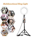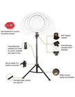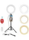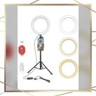 Features & details Kit includes: 1x Ring Light, 1xTripod Stand, 1xPole Mount Phone Holder, 1x Bluetooth Remote Control, 1x Tripod Mount Phone Holder, 1x USB Plug, our 24-hour friendly customer service, 12 months after-sales quality assurance. Dimmable Selfie Ring Light: 10 inches dimmable selfie ring light come with 3 light modes(white, yellow and warm white) and 11 brightness levels. There are 33 kinds of lights for you to choose from, meet all your needs in different circumstances. Perfect for selfie, make-up, YouTube, live streaming, photography shooting, etc. Multi-Function Tripod Stand: Adjustable tripod stand from 13 inches to 50 inches that applies to desktop or ground. Easy installation, turn right to open and turn left to tighten. 2-in-1 design combines the phone holder and the selfie ring light stand, and can also be used as a mobile phone selfie stick. Universal Phone Holder: Made from premium quality plastic and soft protective rubber, it can be rotated 360 degrees. Compatible with almost all smartphones such as iPhone XS/ XS Max/ XR/ 7 Plus/ 7/ 8/ 8 Plus/ X/ 6/ 6s/ 5/ 5s/ 4/ 4s/ Samsung Note 8/ S8/ S9/ LG/ HTC. Flexible USB Powered: Can be easily adapted to most USB-enabled devices such as laptop, desktop PC, power bank, USB charger, etc. Provide you with lighting without location restrictions including indoor or outdoor. Additional power adapter is also included in the kit. Dimmable Selfie Ring Light Brightness Level: 11 adjustable brightness Lamp Beads: 64 white + 64 yellow Color Temperature: 3200 K-5500 K Power: 10 W Pole Mount Phone Holder 360 degree rotation ball head design for any angle Compatible with almost all smartphones such as iPhone XS/ XS Max/ XR/ 7 Plus/ 7/ 8/ 8 Plus/ X/ 6/ 6s/ 5/ 5s/ 4/ 4s/ Samsung Note 8/ S8/ S9/ LG/ HTC. Tripod Mount Phone Holder Dual 1/4" thread connections Compatible with iPhone, Samsung Galaxy Note 8/S8+/S8 and other smart phones. Premium quality plastic and soft protective rubber for extended durability. USB Plug Input: AC 100-240V Output: DC 5V/1A Provide over-charge, over voltage, over current, over heat protection. Power cable Cable Length: 79 inches WIth independent switch to control 3 color temperature & 11 brightness level, safe and reliable, easy to operate.