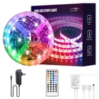 Flexible Strip Light 32ft LED Strip Lights Product Features: 【Multiple Choices LED Strip Light】: This RGB Led strip lights kit can change colors and speed automatically and periodically. It has not only RGB(Red, Green, Blue), 20 multicolored options, but also has DIY selection to create your great led mood lighting. 【Easy Installation and Use】: Led tape lights is cuttable between every 3 leds. You can cut off extra strips to adjust to a proper length. 3M self-adhesive tape can be fit on any dry and flat surface. Flexible to install anywhere you want. 【Connectable And Cuttable】: Strong sponge double-sided tape installation, super viscosity, just plug in all the parts and peel off the protective layer, then stick to the clean and flat surface. These light strips can be cut on all 3 LEDs along the cutting marks without damaging the rest. 【Safety LED Strip Lights】: This led strip light provide 12V/5A power supply no worry about prevent electric shock, short circuit etc, we promise it will provide a safety environment for your. 【Widely Application】: Low Power Consumption. The working voltage is 12V. Extremely low heat. It is touchable and safe to children. The strip lights can be used indoors decoration. Ideal for TV, home, bar, shop, etc.