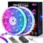 Daybetter 5050 RGB 600 LEDs Flexible Color Changing Remote Control Led Strip Lights - 65.6ft Features Long led lights for bedroom enough to decore your entire room; You don't need to connect additional light strips with connectors to adjust the lenght whatever you like; Long led lights for bedroom enough to decore your room; Contains 600 leds, brighter and better quality Multicolor changing: You can easily adjust rgb, white, 16 other colors and their brightness; With 6 dynamic modes (auto, flash, jump3, jump7, fade3, fade7) and 2 speed modes (quick, slow) by 44keys remote, you can make the led light strips show varieties of different color changes; Use the diy buttons to save 6 colors if you like Remote contol: Using the 44-key infrared remote control, you can easily use the remote control to adjust the led strip lights color and brightness to suit the mood of the room Cuttable and linkable: The lights strip can be easily cut every 3 leds along the cutting marks; You can link it with other strip led lights by additional connectors Easy to install and use: With strong adhesive and flexible design, the strip lights can stick on any dry and flat surface; Suitable for decorating your bedroom, living room, ceiling, upstairs, kitchen, back of tv, desk Decorative lights for parties, shows, exhibitions Suitable for interiors, hotels, clubs, bars, malls Vivid decoration the living room, kitchen, bedroom and so on Notice the led light is used for decoration cannot be used for lighting Details Batteries Required? No Brand DAYBETTER Color Rgb (Red, Green, Blue) Included Components Light kit inlcuded Item Weight 1.54 pounds Item model number D50320-N202006 Manufacturer DAYBETTER Material Plastic Package Dimensions 6.06 x 5.39 x 2.4 inches Part Number D50320-N202006 Power Source Corded Electric Shape Linear Size 65.6FT Special Features Dimmable Style Modern Type of Bulb LED Usage Indoor use only Voltage 12 Volts Wattage 24 watts Our Business 100% Customer Satisfaction We go above and beyond to ensure you receive the best level of service. Returns We want you to be happy with your purchase, however in the rare occasion that you are not, please let us know and we will contact you to arrange either a collection or a refund. Please CONTACT US before leaving any negative feedback and we will promptly sort out any issue with your order. 3515874