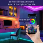 【49.2FT Led Strip Lights Bluetooth】: ① APP Control: scan the QR code in SMILE controller or manual to Download the app"douCol Strip"( Google Play and iOS App Store) ;② Led Strip Lights IR Remote: quickly and easily adjust the brightness and dynamic mode;③ 3-Button switch on the power cord: turn on and of,change colors mode and music mode; ②Led lights for bedroom phone controlled : With built-in sensitivity mic to the beat of your music or even respond to your voice 【Easy Install & SAFETY Use】This flexible led lights can be install in seconds, just peel and stick, Plug and Play. Working voltage of 12V are equipped with short circuit protection and comes with premium certified power adaptor which was tested rigorously and safe to use, the led light strips trimmable run at a low temperature, consume low energy, and produce less heat radiation.(Note: keep strip spread out instead of a roll while turn on.) 【Strong Self-adhesive and Cuttable Strip Design】: The led strip lights stick very well on any clean,dry and flat surface, and we prepare Fixing Clips and Screws to solve the problem of the LED light strip falling off. The light also easily cut and linked with other led strip lights cuttable, which can be cut every 3 leds along the cutting marks,customize the length of the led strip lights you can cut 【Non-waterproof and Widely Used】: This led light strips rgb are not waterproof and equipped with SMD 5050 LED, 16 million colors adjustable making them bright enough to illuminate your bedroom living room, kids bedroom, kitchen,stairs,bars and shops,holiday party decoration to match your mood 【Music Sync Led Light Strip Packing List】: 2 X roll 24.6ft LED strip lights, 1 X 12V power supply, 1 X remote control, 1 X instructions manual and several fixing clips and screws.