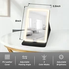 Lighted Travel Makeup Mirror, PU Leather Vanity Cosmetic Mirror with Lights, Rechargeable 1500mAh Battery, 3- Color Light Modes Dimming LED Light Up Mirror of 8X5.5inch, Travel Accessories for Makeup Product Details Color: Black Brand: Suupvaor MPN: Does not apply UPC: Does not apply EAN: Does not apply Brand: Suupvaor Room Type: Office, Bathroom Shape: Rectangular Product Dimensions: 8"L x 5.5"W Frame Material: Faux Leather Brand: Suupvaor Room Type: Office, Bathroom Shape: Rectangular Product Dimensions: 8"L x 5.5"W Frame Material: Faux Leather Style: Modern Mounting Type: Tabletop Mount Special Feature: Touch Sensor, Foldable, Adjustable Color: Black Theme: Travel Specific Uses For Product: Travel, Makeup Number of Pieces: 1 Number of Items: 1 Material: PU Leather Frame Type: Framed Item Weight: 290 Grams Assembly Required: No Manufacturer: huizhoushiheimidianzikejiyouxiangongsi Item Weight: 10.2 ounces Country of Origin: China Batteries: 1 Lithium Ion batteries required. (included) Date First Available: July 4, 2023 The Best Travel Essential Choices Ever go to a hotel with a horrible lighting in the bathroom? Or no counter space? Traveling and sharing a space with others? With this rechargeable led lighted travel mirror, that is no longer an issue. It helps to realize makeup whenever and wherever. 3 Color Lighting & Adjustable Brightness Short press to switch between three color light modes: white, warm and natural light. Long press to adjust the light brightness. According to different occasions to adjust the light you need to ensure you always have the perfect visual effect. PU Leather Case & Angle AdjustableThis travel makeup mirror comes with a high-quality PU leather protective case, not the cheap plastic case on the market. It supports different angles to help makeup more comfortable. Portable Lighted Makeup MirrorThis makeup mirror with lights measures: 8X5.5inches and is 0.8 inches thick when folded. The ultra-thin, lightweight and compact design will make you fall in love with it while traveling. Rechargeable Vanity MirrorOnly need charge once a week with the 1500mAh battery built in. This travel mirror with light can be connected to a laptop or a mobile power supply at any time for charging with the included type-c charging cable, making it ideal for travel, home, or any cosmetic occasion. Travel essential for women.