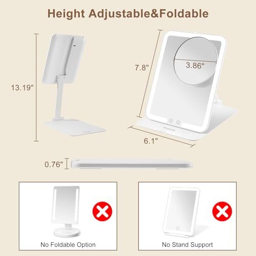 Menu 1. We require immediate payment. 2. We currently accept payment via eBay managed payments only. 3. Once payment is cleared, we will dispatch your shipment within 1-3 business days. Please refer to the "Shipping" tab for more information regarding shipping speed to your destination. Lighted Travel Mirror Tall with Removable 10X Mirror,Rechargeable Light Mirror Portable with Angle and Height Adjusting Stand,Adjustable Make up Mirror with 3 Light Colors & Stepless Dimming Product description Travel Mirror with Light: with a high quality continuous light and has 3 light color settings: warm/ natural/cool light. It features stepless dimming that will stay in memory once it is set. Also comes with a waterproof bag for your daily storage. portable travel vanity mirror dimensions are: 7.8” high x 6.10in wide. With the stand, it measures 13.19’ high. When closed, the mirror is only .76” high so it is very portable making it perfect for travel. Angle & height adjustable stand: Folding travel mirror with a 90°rotating bracket and mirror can rotate to 180°. Light will also turn off automatically after 30mins. Extra 10X magnifying mirror: Lighted makeup mirror package includes a small 3.86” 10X magnifying mirror that can attach to any part of mirror face magnetically and can also be used as a pocket handheld mirror. Rechargeable 1500mAh battery: The rechargeable Illuminated Mirror has built-in 1500mAh lithium battery & type C usb port for recharging & a 39” long USB cable. Charging time is 2hrs and will last 2.5 to 5hrs wireless usage What’s Included in box: 1pc travel make up mirror & 1pc 3.86” 10X magnifying mirror & 1pc 39” USB charging cable & 1pc waterproof storage bag. PLEASE MESSAGE US IF YOU HAVE ANY OTHER QUESTIONS, AND MANY THANKS FOR READING ALL OF THIS. Copyright ©#. All Rights Reserved.