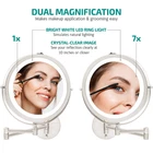 Makeup Mirror Lighted Wall Mount Adjustable Double Sided Round LED Folding Arm Item detailed information: This small wall mounted makeup light mirror can be great for many décor, including vintage, Victorian, Hollywood, medical, or anything that involves beauty and self-care. This bathroom mirror with LED light is a classy addition for bathroom, bedroom, grooming, shaving and vanity needs. You can pull or flex the swinging extension to many angles. This wall makeup mirror gives a chic modern look for any master bath and it is hands free for any home, hotel, dental, and shower needs. Having an attached, strong bright wall mounting mirror is great for maintaining a clean space, by keeping one more item off the countertop. It is operated by batteries (not included). This wall mounted LED vanity mirror allows you to see up close so you can absolutely see your eyebrow and facial hair, much more clearly. It is sure to bring an influx of positive high end energy to any room for everyone, including girls, boys and kids. Its ability to magnify, show off your accessories and continue a salon and spa experience at home makes this a consumer preferred product. 13" Extension from wall w/ Diffused White LED Ring Light - Long lasting and energy efficient light bulbs that simulates natural daylight lighting. Extendable arm for your convenience. Concave Lens –Creates the magnification side. For a clear, undistorted view, look into the mirror at 10 inches or closer. (See Maximum Distance Recommended Guide). 4 AAA Battery Powered - Operates cordless, using only batteries (not included). Twist and Pull to remove the face of the mirror to reveal the battery compartment. Dimensions (L x W x H) 8.10 x 1.40 x 11.60 Inches; Weight 2.7 lb; Free Shipping: within the 48 U.S. states Shipment only to the lower 48 states. We do NOT ship to PO Boxes Returns: We offer a 30 day return policy from the receiving date. All items purchased must be returned in the same condition as they were delivered in. Items defective upon receipt must be packaged in their retail packaging as if new and returned with a detailed description of the problem.