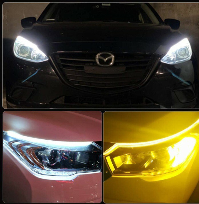 tira de luces LED para coches, tira de faros LED para luces de circulación diurna, luz intermitente, DRL secuencial, tira de luz ámbar/amarillo y blanco (2 unidades . 2P-YMDR0001US-W/Y
