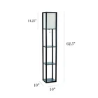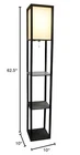 Illuminate your living space in style with our floor shelf lamp with linen shade. This gorgeous piece adds versatility as the shelves can be used to display photographs and other memorabilia while the linen lamp shade casts a soft, warming light throughout your living space. This lamp adds sophistication and style to any home's décor. Floor lamp with 3 shelves for storage/display Pull-chain on/off switch Linen shade casts soft, warm glow Lamp measures: L:10" x W:10" x H:62.5" Uses 1 x 100W equivalent Type A medium base bulb (not included)