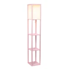 Illuminate your living space in style with our floor shelf lamp with linen shade. This gorgeous piece adds versatility as the shelves can be used to display photographs and other memorabilia while the linen lamp shade casts a soft, warming light throughout your living space. This lamp adds sophistication and style to any home's décor. Floor lamp with 3 shelves for storage/display Pull-chain on/off switch Linen shade casts soft, warm glow Lamp measures: L: 10.14" x W: 10.14" x H: 62.75" Uses 1 x 100W equivalent Type A medium base bulb (not included)