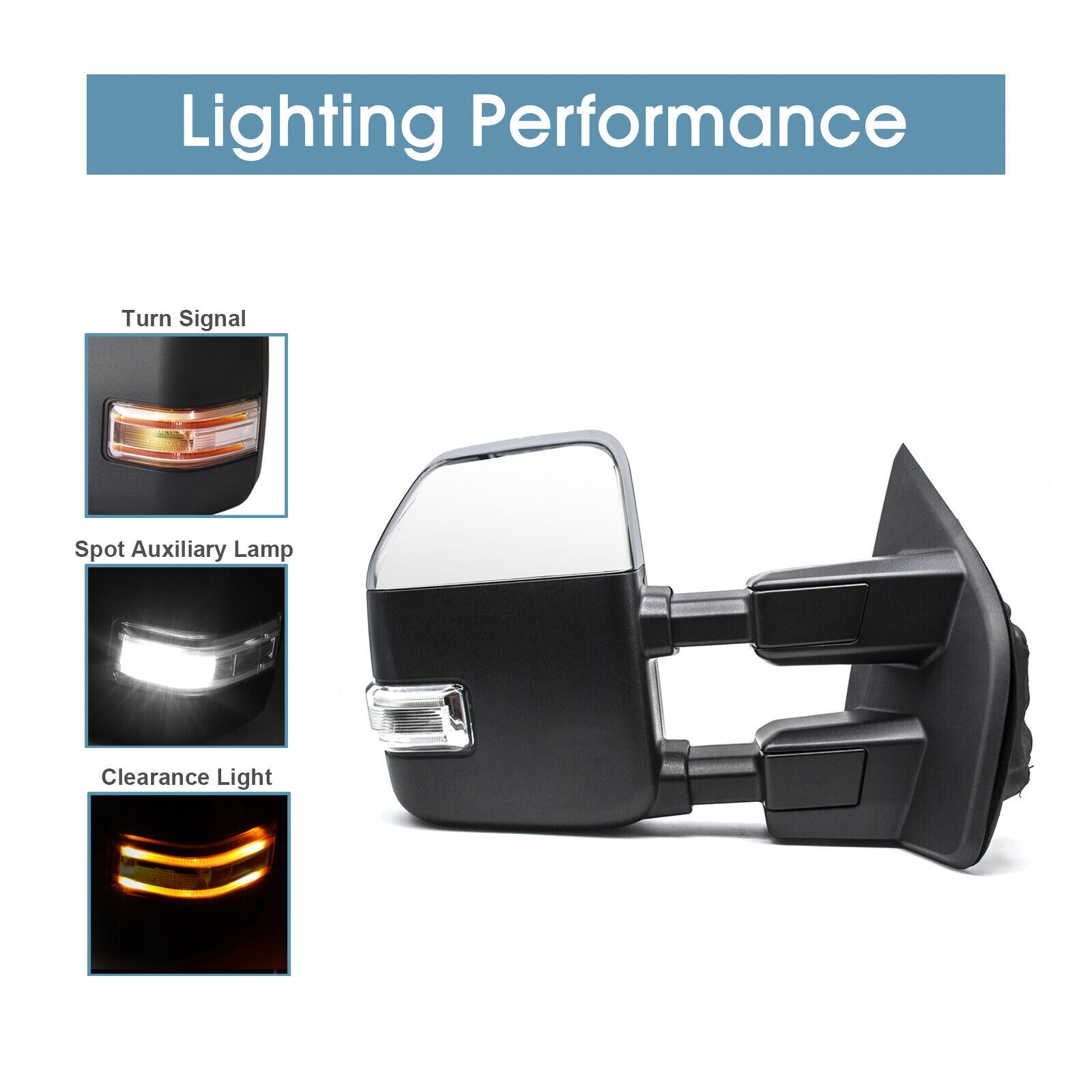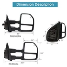 Product Description Detailed description of the product Specifications : Condition New Number Of Pieces 2 Fold Away Manual Fold Warranty 1 Year Color Chrome Location Passenger Right + Driver Left Side Features: LED Turn Signal Light Power Adjustment Mirrors Glass Heating Element to Defrost Mirrors Chrome Housing Manual Extendable Arms Ambient Air Temperature Sensor Auxiliary Lights Fits: 2017 2018 2019 2020 Ford F-250 F-350 F-450 F-550 Super Duty Pickup Note : These mirrors will only work properly on vehicles with these exact options. If your vehicle does not have the options listed, these mirrors may not function properly. No installation guide. Professional installation is highly recommended. In the event the item should fail due to manufacturing defects during intended use, we will replace the part by free.(1 Year Warranty) If you encounter any problems, please contact us and we will provide you with solutions. Thank you! Payment Shipping Returns Contact Us PayPal is our preferred method of payment for all of our eBay sales. For customer service please contact us via eBay MessagesImmediate payment via PayPal is required for all Buy It Now items. If you need special arrangements, please contact us through eBay messages. Generally, all goods will be shipped within 24 hours after the payment on the working day (except for goods sent from China). If you want to cancel the order or change the address, please contact us within 6 hours after payment, otherwise we will not be responsible. It takes 3-5 working days for logistics and transportation to be delivered. If you are not satisfied with your purchase, you may return it, for a refund or replacement - subject to the following: Contact us through eBay messages or the returns link to receive a Returned Merchandise Authorization (RMA) number to ensure proper handling of the return and/or replacement. In order to be eligible for a full refund, less shipping expenses, your returned merchandise must be in its original new condition, as shipped, with all packaging, manuals, and paperwork intact and unaltered. Items which have been opened are returnable, however they will carry a restocking fee. If that product is returned for a refund, the shipping expenses incurred, will be deducted from the refund. If an item is refused, the carrier bills us for shipping both ways, and these expenses incurred on your behalf need to be deducted from your refund If you have a question about a part you should contact us before buying.And If you have any questions after purchase, please contact us and we will provide a a satisfactory solution. Related Products Towing Mirrors Power Heated For 2017 2018 2019 2020 Ford F250 F350 SD LH+RH Side Left Side Tow Mirror Power Heated Signal Fits 2017-2020 Ford F450 F350 SD Chrome Right Side Tow Mirror Power Heated Temp Sensor For 2018-2019 Ford F250 SD Chrome Towing Mirrors Power Heated For 2008-2016 Ford F350 Super Duty LH+RH Chrome Cap Towing Mirrors Power Turn Signal For 1999-2016 Ford F-350 F-450 SD LH RH Chrome Heated √ √ √ √ √ Power √ √ √ √ √ Turn Signal Light √ √ √ √ √ temperature sensor √ NO √ NO NO Clearance Light √ √ √ √ √ Puddle Light NO NO NO √ √ housing color Black Chrome Chrome Chrome Chrome folding Manual Manual Manual Manual Manual fit for 17-20 Ford F-250 F-350 F-450 F-550 17-20 Ford F-250 F-350 F-450 F-550 17-20 Ford F-250 F-350 F-450 F-550 08-16 Ford F-250 F-350 F-450 F-550 99-16 Ford F-250 F-350 F-450 F-550 [22 Pin Plug On Nov 13, 2024 at 05:45:47 PST, seller added the following information: On Mar 28, 2025 at 11:26:53 PDT, seller added the following information: