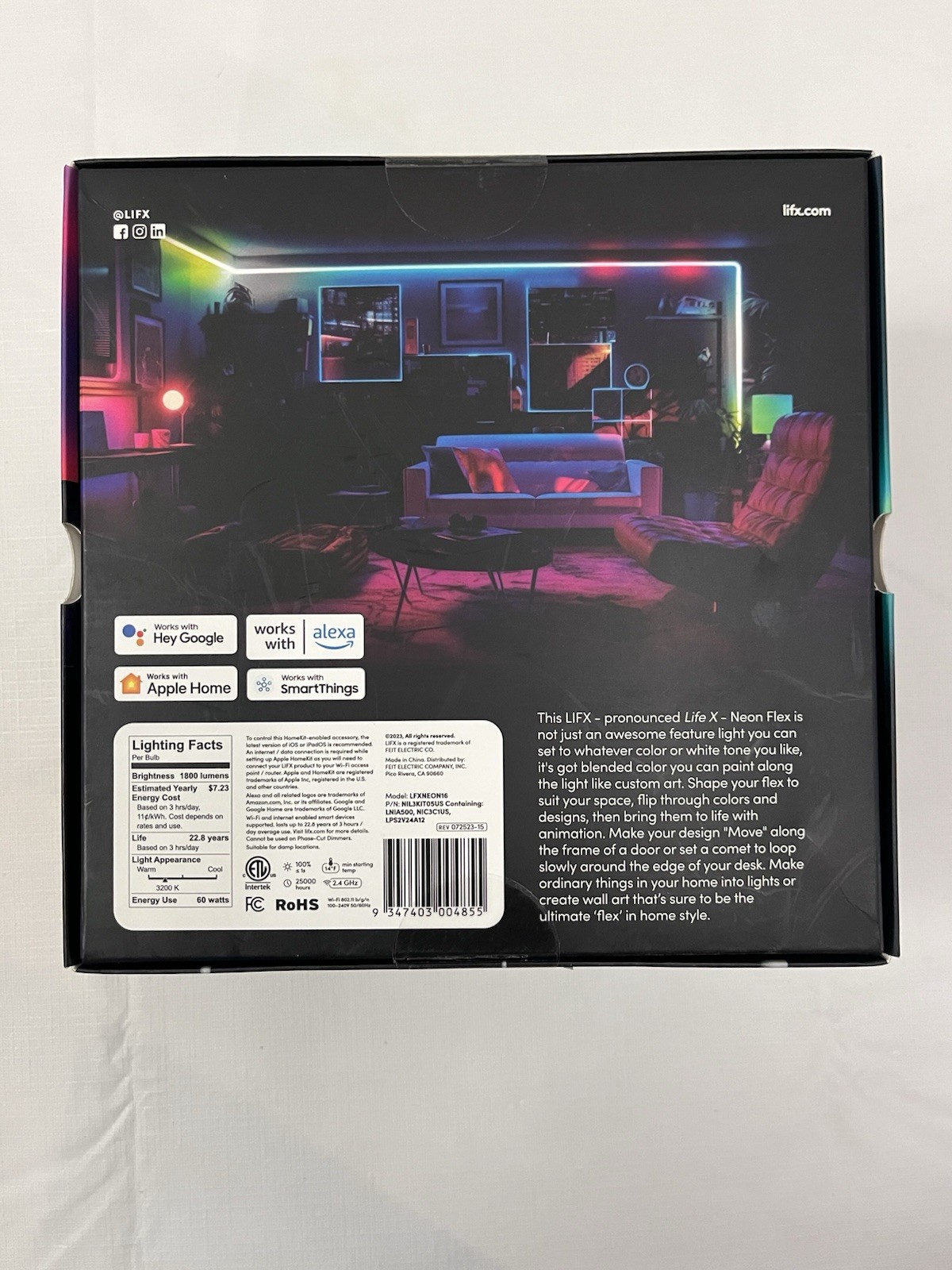 Lifx is a neon like that's smart. It changes shape in your hands. Can dance with seemingly endless colors and special effect. It's like neon but way better. No bridge or hub, just wifi 5x Brighter 16 Feet LED Flexible Light Rope Polychrome color bending Can create mesmerizing texture light and effects made up of many tones with one light. Works with Google, Alexa, SmartThings and Apple Home. Calibrates in real time for lasting, accurate color rendering. Award winning color experience. It has 60 zones. The broadest white spectrum in smart. (1500-9000k) New in box. sealed, unopened
