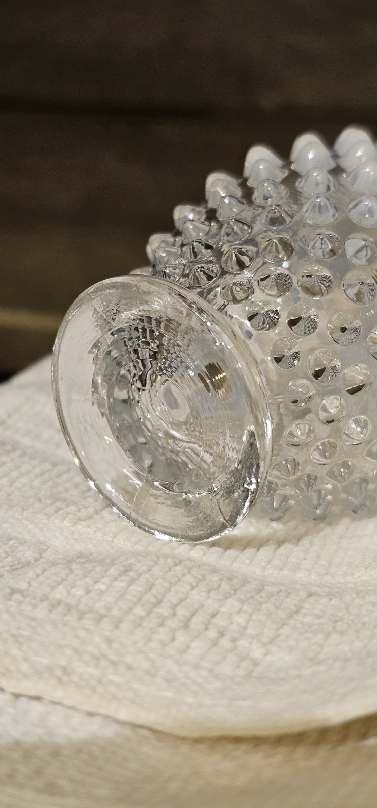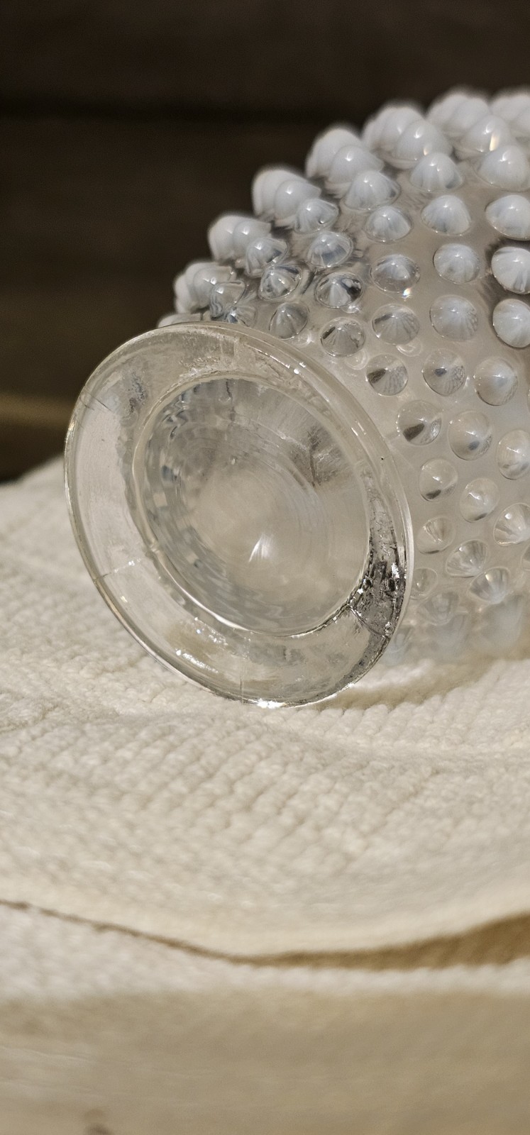 Here are 2 Fenton French Opalescent Hobnail Mini vases and 1 Fenton Opalescent Dish. All are crafted from luxurious opalescent glass. From the 1940s, they have a classic elegance with the intricate hobnail (bumps) design. The crisp white hue and light blue provide a versatile match to any decor. They look like they glow, especiallyunderuv or blacklights. All 3 glass pieces are in perfect condition. That's how they'll arrive. No chips, cracks or scratches. Functional or for display, they match 2 other Perfume Bottles I recently posted. Please see pictures for details and condition. Items will be packaged with care and shipped within 1 day after receiving payment. Thanks for stopping by and looking!
