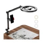 Brand New LUOLED Ring Light with Stand and Phone Holder, USB 10'' Ring Light for Desk, Overhead Camera Mount with Ring Light, Desktop Ring Light with Clamp for Photography/Makeup/Live Stream Video/YouTube Manufacturer model: RF100 10'' Dimmable Selfie Ring LightThis 10 inch dimmable desktop ring light consists of double rows of LED lights which provide 3200K-6500K color temperature, so it is soft and bright enough to adjust your lighting need. The overhead camera mount with ring light features 3 colors lighting modes and each mode has 10 brightness levels, you can always choose what you need to adjust to the mode and brightness you want to get the perfect amount of lighting. Multiple ApplicationIf you do live steaming on Instagram/Youtube/Tiktok, but always find yourself difficult to find the perfect lighting.The ring light with clamp and 1m harness sticker stand will perfectly solve your problem. It can really make a big differences in the quality of your live streaming and videos.More than that, this overhead tripod for iphone performance well on video recording,broadcasting, zoom meeting,but also provides lights for photography, makeup,selfie,filming and etc. Flexible & Durable Stand with 2 Phone HolderThe overhead camera mount uses aluminum alloy material, the total weight of the main bracket is 1.94 pounds, and using a unique gear joint, you can choose any suitable angle in 360. This ring light with stand has 2 phone holders, the ring light has a 1/4'' ball head connected a phone holder, and the main bracket has a movable phone holder that can be adjusted arbitrarily. You can work with two phone holder at the same time. Dual Channel Protective Desk Clamp This overhead camera mount has two channels on the top and side, you can choose it as you like, such as on tables and chairs, making it more widely used. The inside of the C-clamp has sponge cushions and rubber cushions to prevent scratches on the desktop. The maximum clamping range for the table is 2.4''/6cm. Save your space than the light tripod. After Sales Service If you are not satisfied with LUOLED ring light with stand and phone holder or have any further issues, you could contact us anytime. And you will get a satisfactory answer and solution within 24 hours 1 year warranty. Description Shipping and Handling Please allow 5-7 business days for the package to arrive, regardless of buyer location within the US. We will provide an online tracking number to you once the item has been shipped. It may take a few business days for our automated system to process the tracking number onto eBay. However, this will not affect the shipping times. Return Policy All our products are brand new and sealed. All items qualify for returns within 30 days of receipt. Feedback We take our reputation seriously. If you have any questions or concerns, please contact us and we will respond back to your message within 24 hours.