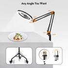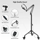 【A Movable Tripod】The overhead tripod features three heavy-duty casters. When you need to switch shooting scenes or angles, these movable casters provide great convenience. The casters are covered with a layer of silicone, ensuring noiseless movement. 【Shadow-Free Shooting】The market shooting devices place the phone below the light, causing the phone to block the light and create shadows underneath. LUXSURE ring light with stand places the phone in the center of the ring light, ensuring that the light is not obstructed and your photos are shadow-free. 【Stable and Vibration-Free】The tripod for iphone with light is made of metal, with each wheel weighing 1 pound. The phone tripod with light can support up to 3.3 pounds of equipment without any drop-off. The phone holder (including two holders) can rotate 360°, making it compatible with nearly all phones. 【3 Colors and 10 Brightness Levels】The LED ring light for phone offers three colors of light: white, natural, and yellow. With ten brightness levels, you can easily adjust the light's color and brightness based on your shooting content. This significantly enhances the quality of your photos and videos.Please connect more than 10W adapters, which can guarantee sufficient brightness. 【Bluetooth Remote for Easy Operation】 Included with the tripod with ring light a bluetooth remote that pairs with your cell phone, making it easy to take photos and control video recording from a distance. This hands-free feature streamlines your creative process and boosts productivity. 【Lifetime Warranty and Wide Compatibility】The hinge arm’s 1/4 screw interface can connect to multiple devices. The overhead camera mount can attach to phone holders, webcams, digital cameras, ring lights, and GoPros. Therefore, it also functions as a desk stand for your phone, a camera holder, or a desk lamp.