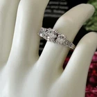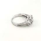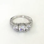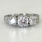 Setting Style: Three-Stone Shape: Round Ring Size: 8 Material: Gemstone, Stone Color: Silver Occasion: Anniversary, Birthday, Christmas, Engagement, Graduation, Mother's Day, Valentine's Day, Wedding Main Stone Shape: Round Main Stone: Cubic Zirconia Type: Ring Brand: Estate Metal: Silver Plated Style: Band, Cocktail Main Stone Color: White