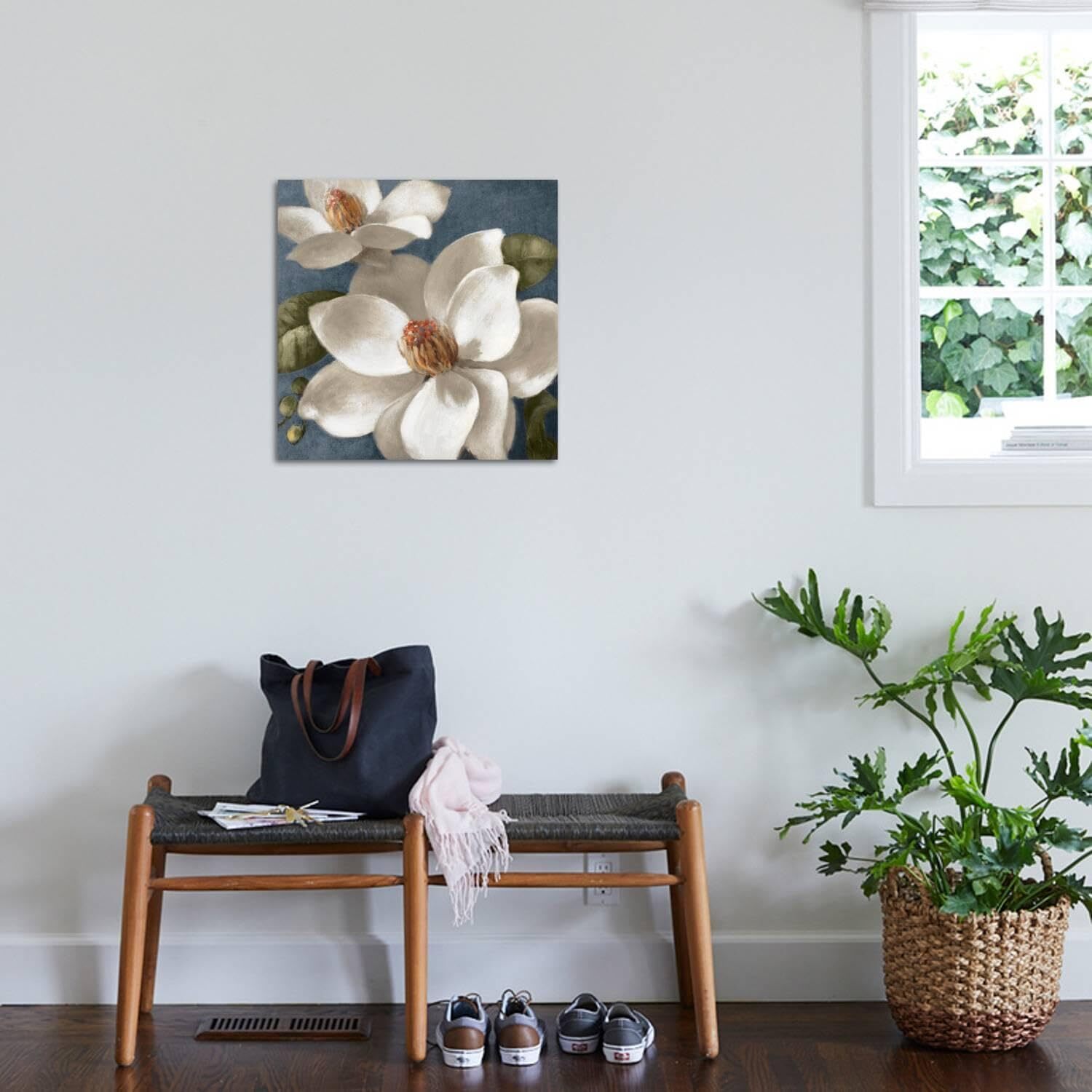 This stunning magnolia print adds a fresh, elegant vibe to any space. The vibrant blue background makes the flowers pop, and the high-quality print ensures rich, lasting colors. Perfect for adding a touch of nature-inspired beauty to your home—love how versatile it is for different decor styles!