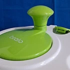 Bralo Large Vegetable Salad Spinner This spins your Vegetables/Fruit to release the water This is 8 1/2" tall x 10" in diameter Comes with Bowl, Strainer and Lid Great Condition!