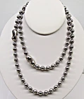 ~ ~ Industrial STAINLESS STEEL Ball Chain ~ ~ ~ #20 Size which is 8mm (approx 5/16") Various Lengths for Necklaces, Bracelets or Anklets. Check what length will fit by measuring neck, writs or ankle. Using a string is a easy way. #15 Stainless Steel Ball Chain - Type 304 Ball size is 8mm, approximately 5/16". Versatile chain. Industrial Strength. Tensile Strength is 125 pounds. Note: Link is also stainless steel. Wire diameter is 1.7mm, slightly larger than 14 gauge. NOTE: The connectors are nickel plated brass. P NOTE: Stainless steel is a hard metal. This chain is made using an extrusion process. The result can be light "lines" on each ball. When rubbed with finger, they cannot be felt; not rough or sharp. See photos. This is not a defect, but a result of the manufacturing of the chain. Stainless steel will not tarnish. It is a very strong and durable metal Pick your length from pull-down menu. Made in USA TERMS of SALE: FREE shipping. Any order over one pound automatically ship Priority Mail. Purchases ship within one business day. Positive feedback is automatically posted for buyer upon receipt of purchase. Thanks so Much!