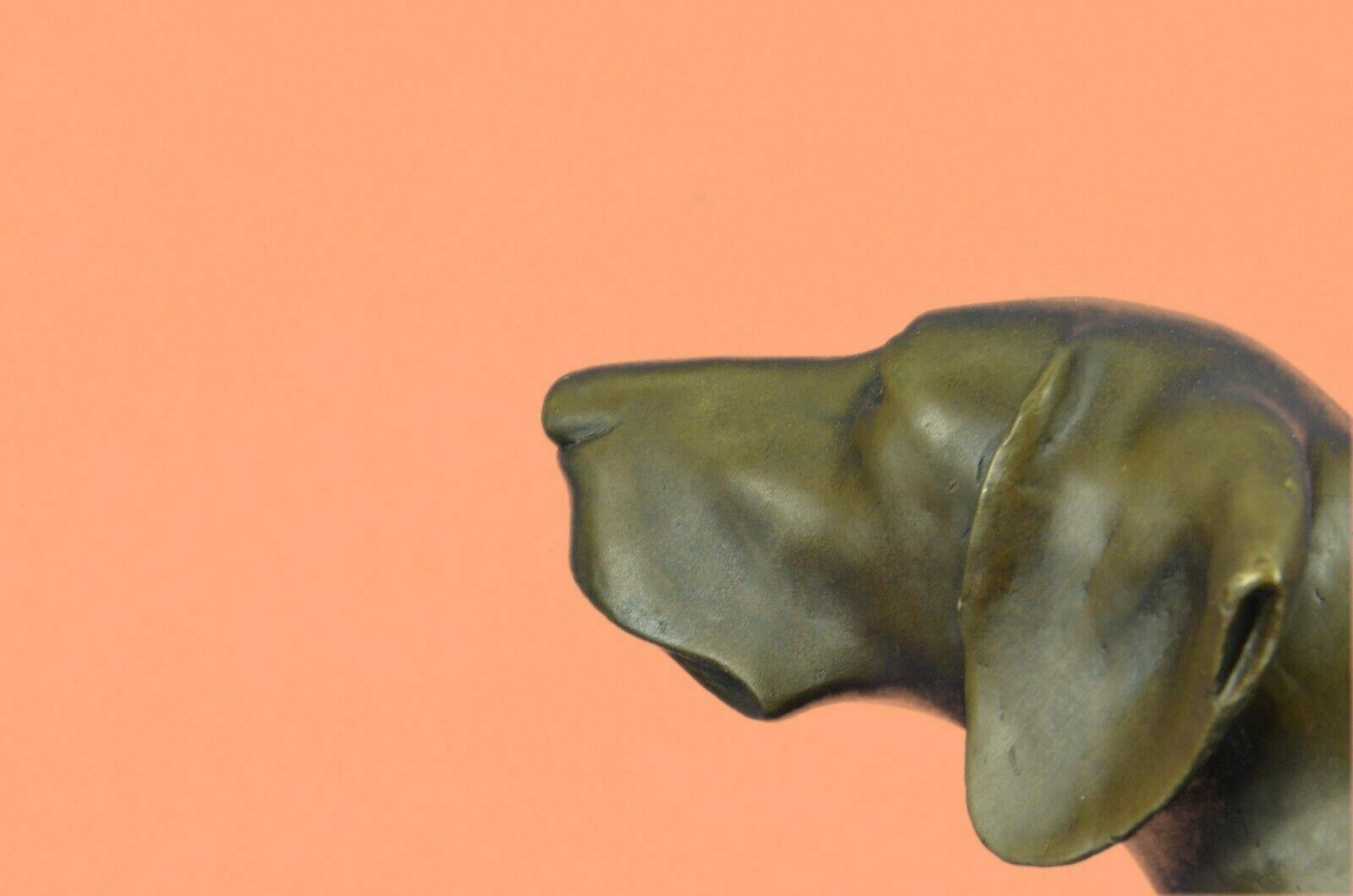 . Condition : This sculpture is in perfect condition. Bronze Dimensions with Marble Base: Height 15.5" X Widthnbsp; 11" Marble Dimensions: 6" X 6" Height without base: 11.5" Weight: 20 LBS Inventory: 26YDW1796562 Celebrate the regal charm of the Basset hound with this exquisitely crafted bronze sculpture. In a pose of dignity and grace, the majestic canine sits upright, showcasing its distinctive long ears, wrinkled brow, and muscular physique. The attention to detail in this sculpture is remarkable, capturing the breed's characteristic features with precision and artistry. With a solemn expression and a loyal gaze, the sculpture embodies the Basset hound's loving and devoted nature, making it a heartwarming addition to any dog lover's collection. Crafted using the revered "Lost Wax Method," the sculpture preserves the essence of the Basset hound with authenticity and craftsmanship. The two-toned brown patina finish adds depth and character, enhancing the lifelike qualities of the sculpture. Mounted on a solid brown marble base, the piece exudes classic elegance and sophistication, making it a timeless accent for any space. Weimmeraner/Vizsla Dog Bronze Sculpture Statue Home Decor Hot Cast Figurine SALE www.bronzhaus.com Video will open in a new window Using the eBay App? Paste link into a browser window: [isdntekvideo]