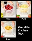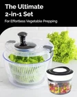 Large Salad Spinner with Drain, Bowl, Colander, & Produce Chopper - Multi-Use Lettuce Spinner, Fruit Washer, Vegetable Dryer, Pasta & Fries Strainer with Small Pull Cutter Salad Chopper Set - 5.28 Qt Desription Turn Chore into Pleasure - Say goodbye to hand-washing lettuce, drying chopped salad with paper towels, creating a watery mess, and settling for bland salads; Our salad spinner large 5L device effortlessly spins quick, mess-free, and gourmet food 4-in-1 Tool Kit - You can use the clear base as a serving bowl or salad mixer, the basket as a drainer or washing basket, and the compact chopper slicer to cut, chop, and slice fruits and vegetables - all you need to make sumptuous salads! Built-in Drainage System - Easily clean, dry, and enjoy fresh greens, fruits, and veggies with our removable lid design - simply add water through the lid, spin-wash, pour out, spin again to remove extra leftover water, and voila! Smart Design - The non-skid base provides stability and control, so the bowl container remains steady on your counter while using the fruit cleaner spinner; The two locking clamps prevent water and greens from spilling and making a mess Not Just for Salad - Our spinners spin veggie, herb, cilantro, and more dry, remove excess water from pasta so your sauces stick better, and even de-oil fries! Say hello to one of the best and most versatile kitchen tools and gadgets you never knew you needed! *This food processor can be used to prepare salsa,smoothies, coleslaw, breadcrumbs, soups and chop meat for burgers Turn chore into pleasure and make your salads tastier. Forget washing gem lettuce by hand, drying chopped salad with tons of paper towels, spraying water all around the kitchen, and bland, watery salads. Our easy rotary handle makes spinning effortless so that you can enjoy the convenience of a quick, mess-free, and tasty salad. Just add water through the lid as you spin-wash, tip salad spinner to pour out water through the opening in the lid, and spin again to remove excess water and dry. Improved design - all parts are separated for easy use and cleaning. You can use the clear base as a serving bowl or salad mixer and the basket as a convenient colander or vegetable washing basket. That's more space in your cupboards and fewer dishes to wash. Use it as a vegetable spinner when cleaning veggies or as a fruit washer before enjoying your berries. You can even use it to spin out any remaining water from pasta, so your sauces stick better, or to remove excess oil from french fries. It's one of the most useful gadgets in any kitchen. SHIPPING Delete this and type your SHIPPING INFO PAYMENT Delete this and type your PAYMENT INFO return Delete this and type your PAYMENT INFO
