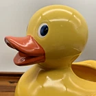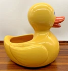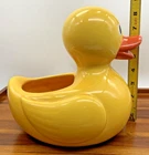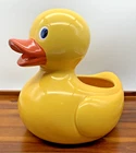 Large Yellow Duck 8.5" Ceramic Planter 'Rubber Ducky' Style by Teleflora Gifts In great overall condition, no chips or cracks! The duck does show crazing, I have added many pictures zoomed in to show this. Otherwise, it is in great condition and so cute! Measurements are in the pictures. Roughly 8.5 inches tall, 7 inches wide, and 9 inches long. Weighs 2 lbs 4 oz. Please zoom in on photos for a better view of the item's condition. We do our absolute best to research all items we sell. If you ever have questions, please reach out to me! We will always package items securely and with care. Thank you for viewing and please visit our store for more awesome vintage goodies!