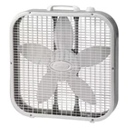 Lasko 20" Classic Box Fan with Weather-Resistant Motor, 3 Speeds, 22.5" H, White The Classic Lasko Box Fan with a 20 inch fan blade creates efficient airflow to keep your home or work space cool and comfortable and helps to dry out dampness. Everyone needs a great basic, and this box fan is just that. Features 3 quiet fan speeds, top-mounted controls for easy operation, built-in handle for portability, and a durable metal frame. The front grill and fan blades are removable for easy maintenance to maximize efficiency. This box fan also features a weather-resistant motor for worry-free indoor window use. No tools are required for set-up or maintenance, adding even more convenience. Condition: New . Easy-to-use manual controls 3 quiet fan speeds Weather-resistant fan motor for worry-free window use No tools are required for set-up or maintenance, Built-in carry handle Can be used on tables, floors or in windows Perfect for bedrooms, living rooms, home offices and more Use in conjunction with an air conditioner to boost cooling airflow Equipped with Lasko's trusted, fused safety plug