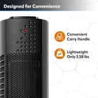 Lasko Oscillating Ceramic Slim Tower Desktop Space Heater 14.13" High, Black Product Details Brand: Lasko Special Feature: Portable, Widespread Oscillation, Built-In Safety Features, 2 Heat Speeds Color: Black Form Factor: Tower Indoor/Outdoor Usage: Indoor Product Dimensions: 5.5"D x 4"W x 14.1"H Recommended Uses For Product: Home, Office, Living Room Mounting Type: Floor Mount Room Type: Bedroom, Living Room, Home Office Heating Coverage: 100 sq.ft Burner type: Ceramic Fuel Type: Electric Number of Speeds: 2 Voltage: 120 Volts (AC) Amperage: 12.5 Amps Max Temperature Setting: 750 Degrees Fahrenheit Manufacturer: Lasko Part Number: CT14101 Item Weight: 3.58 pounds Item model number: CT14101 Size: 14.13" High Wattage: 1500 watts Item Package Quantity: 1 Number Of Pieces: 1 Special Features: Portable, Widespread Oscillation, Built-In Safety Features, 2 Heat Speeds Included Components: User Manual, Space Heater Batteries Included?: No Batteries Required?: No Brand: Lasko Special Feature: Portable, Widespread Oscillation, Built-In Safety Features, 2 Heat Speeds Color: Black Form Factor: Tower Indoor/Outdoor Usage: Indoor Power SourceHeating Method: Corded ElectricConvection Item WeightHeat Output: 3.6 Pounds1500 Watts ✅【QUICKLY HEATS YOUR SPACE】 – Powered by an energy efficient ceramic heating element this portable space heater has 2 heat settings, High (1500W), Low (900W), plus an Auto Eco Control/Save-Smart option. The optional widespread oscillation helps evenly disperse warmth throughout your space ✅【EASY TO USE】Comes fully assembled. Simply take it out of the box and plug 6 ft. 2-pronged cord directly into a standard 120V wall outlet. At 14.1H x 5.5L x 4W inches, this small space heater easily fits on a table, desk, countertop, or nightstand and is ideal for warming up the bedroom, home office, kitchen or anywhere warmth is needed ✅【SAVE ON ENERGY COSTS】 – With the Save Smart function, the heater starts on HIGH and warms the surrounding area. When the air temperature reaches 75 degrees, the heater automatically self-adjusts to LOW. It doesn’t shutoff like all other manually controlled heaters. By not shutting off completely, the heater maintains a steadier room temperature vs cycling on/off, thereby reducing the variation in room ✅【BUILT-IN SAFETY FEATURES】The Automatic Overheat Protection takes the worry out of using the heater for long periods of time. The self-regulating ceramic heating element helps keep the exterior housing cool to the touch, making Lasko a safe choice for chilly days and nights. ETL listed Stay warm all season long with the Ultra Slim Tower Heater by Lasko. This slender heater delivers 1500 watts of power and features Auto Eco control that emits non-stop warmth and automatically self adjusts to 75 degrees to help save energy. This heater features top-mounted controls and 2 heat settings (high and low). Its widespread oscillation evenly disperses soothing warmth and is ideal for bedrooms, dens and home offices. Built-in safety features include an automatic overheat protection and an exterior that stays cool-to-the-touch. This space heater is ETL listed and comes with a 6-foot power cord. 3 year limited warranty. For your safety, do not use space heaters with extension cords.
