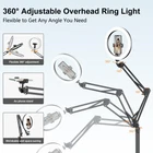 Innovative and Practical Ring Light: The latest 2024 version of overhead ring light with stand features a new design concept that combines the advantages of traditional ring light with stand and overhead ring light. This unique ring light offers both durability and stability without being limited by the width and height of your desk, No worry about only to mount on your home desk anymore,you can use it on your kitchen,bedroom,garden ect, very useful and convenient Widely Use Ring Light Tripod for iPhone: Compared to the traditional overhead ring light, phone tripod stand with ring light get wider range of shots, more easy to recording entire process of filming cooking videos; daily life photos and videos ect Upgraded Sturdy Base&Enough Height: overhead camera mount with ring light is made of alloy material,durable and long lasting,the 4 mm thickened solid base provides more stable and reliable support,very stable during use for videos and photos.carbon steel and reinforced base will get longer using time.In addition,compared to the ring light with stand on the market,this overhead ring light tripod has a maximum height up to 70.8 in, meet the height you need almost all scenarios of use Best Overhead Phone Mount for Recording: ring light phone stand is reinforced lamp head to get more stable for photos. Ring light for phone has 3 conventional lighting mode: warm light; natural light; cool light, each mode has 10 brightness levels, and a total of 30 options will meet all your needs in different circumstances.You can move this ring light everywhere on your home easily. NOTE: USB powered. It is recommended to use a plug(not included) with 10W or more for higher brightness Packing List: 1 Black ring light,1 clip,1*cantilever stand,1 I clip,1 user manual, 1 support base & rod.This ring light is easy to set up. Please get in touch with us anytime and anywhere if you have any questions Perfect Present: upgrade ring light as a special perfect present for Birthdays, Valentine's Day, Anniversaries, Father's Day, Mother's Day, Thanksgiving, Halloween, Christmas, Back-to-School Season, and Teachers' Day for women, man,girls, boys