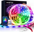 APP & IR Remote Control; Smart led strip lights can be controlled via apollo lighting app and 20 keys remote control, with rich functions and simple to use; With a stable Bluetooth connection, you can change the lights colors and modes, power the lights on/off or adjust brightness within a 10m control range Built-in Mic & Sync to Music; The led controller box with a built-in sensitive microphone allows you to sync the strip lights to music; Jazz it up with color-changing led lights that dance to the rhythm of any song, make your party's ambiance more exciting and happier Smart Timing Settings; With timer function, the RGB led light strips will allow you to preset time to turn on/off led lights and change color at certain times, also can enable or disable it after setting up the timing as needed; Just enjoy it in a smarter way Multiple Scene Options; With 22 different style selections of the 100ft led color changing lights, ultra-long is enough to reach around your entire room and light up the whole home decorations, also be able to create a more romantic atmosphere for your datings, dinners, and a movie night Warm Tips; Non-Waterproof flexible strip lights with a DIY feature allow you to create your own colors and light effects, you can cut the exceeded length according to your need, please make sure the power is off before cutting, and you need an extra connector, power, and remote for the rest part (Not included in the package) Product Description APP Control ✓ ✓ ✓ ✓ X ✓ Length 10 Pack 2 Pack 15ft 12.5ft 65.6 ft 50 ft Brand Description Allows your daily life more wonderful with DAYBETTER led lights for home, car, TV backlight, and outdoor. In addition, DAYBETTER also has smart bulbs and plugs to support your daily needs and schedule. DAYBETTER Light up Your Life APP Control: Download the "Apollo Lighting" App, you can control home lights on it even if you're outside, making life smarter; Voice Control: Simply come on or off, brighten up or down and change lighting colors with your own voice; Light up Your Life: 100ft strip light length allows you to decorate anywhere you want, please test the connection and lighting before decorating your room. Package Content 2 * 50FT led strip lights 1 * 12V/2A power adapter 1 * Remote controller 1 * IR receiver (control box with built-in mic) 1 * User instruction Updated Remote and Control Box Built-in mic controller box 20 keys IR remote control 10m control range (must be pointing at the sensor without any obstacles) Power Adapter Input: 100-240V 50/60Hz 1.0A Max Output: 12V 2A 24W Safe to use Unspool The Strips Please note: the light strips should be spread out to avoid overheating and then damage when using them Cuttable and Linkable It can be cut every 3 LEDs along with the cutting marks, without damaging the rest of the strip, letting you DIY the strips to a customized length. Please Attention: Make sure the power is off first; Once the strips are cut, both ends will need separate power sources; If cuts are made by accident it can be fixed by adding an additional gapless connector (NOT included with the package). Multiple Mode Options Music Sync Mic Mode Timing Function