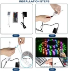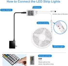 Self adhesive: Led lights strip has double adhesive so that they can stick well Tape light features: The led strip lights make of 5050 led chip allows and can use outdoor Cuttable and linkable: The led strip can be cut and linked with another strip led lights Color changing: The lights can offers 44 different colors and modes Remote controller:The led lights kit can changing colors by remote Product Description What You Get : Comes with 1 roll 16.4ft/5M RGB LED strip, 12V power supply, IR box controller, 44 key remote controller and connectors No more accessories are required. Applications The lights can use for room lighting. Long lifespan and low power. It is suitable for lighting the kitchen, bedroom, living room, mirror... The lights have many colors for holiday ,Added atmosphere to your holiday. Life needs a sense of ritual, colorful lights make your life relaxe and exciting. Try to make your room different