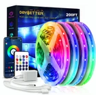 Smart APP and IR remote control;The 200 feet led strip lights support both app apollo lighting and 20 keys ir remote for control, Different modes can be chosen, like Flashing, Quick, Jump, Fade, etc. You can freely choose to control 16 million colors. Built-in Mic & Sync to Music; The led controller box and your smartphone app with built in sensitive microphone,the led strip lights dances to the ambient sound;make your party up to the high peak Smart Timing Settings;With timer function,The led strip has color memory and setting the time function,so it can automatically turn on and off Multiple Scene Options:The led strip lights 200 feet ,4 rolls of 50 feet, is long enough for bedroom, ceiling, kitchen, living room, bar and party decoration Easy installation:With strong adhesive, the strip lights can be firmly sticked on wooden or lacquer wall and other clean surfaces,Just follow instructions on manual and you can finish in minutes.Note that it's NOT waterproof and is designed for indoor use only. [non-waterproof] Product Description LED ✓ ✓ ✓ ✓ ✓ The led strip lights 200 feet, 4 rolls of 50 feet, ultra long enough to circle your room twice,And make your party up to the high peak. App Built-in Mic The app built-in high sensitivity microphone and the LED strip lights can change colors and modes with the external sounds. Smart APP Control The app let you experience various modes and colors.The APP can also meet various DIY color needs and adjust moods. Sync to Music Click the microphone or music mode, and the strip lights can ‘dance’ to the rhythm of the music. controller box with Built-in Mic The led controller box with a built-in sensitive microphone allows you to sync the strip lights to music. Timing function With timing setting, you can set the LED lights to turn on/off at a certain time. Ir remote control The 20-key IR remote with rich functions and simple to use,which allow you change the led lights color.
