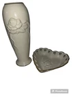 Vintage 2 Piece Set Of Lenox Hearts And Embossed Rose Cream Vase Bowl Set. Bowl made in USA Vase height is 6" made in Thailand.