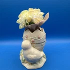 This Lenox Miniature Vase features a charming Easter-themed design, with a chick holding an egg on a bud vase adorned with ivory and gold trim. Made of porcelain in China, the vase is detailed with petals and pearls, adding a whimsical touch to any collection. Open box. Excellent condition. No cracks or damages. Comes with original box. Please check the pictures carefully as part of the description. Feel free to ask questions if you need more information before you buy it. Thank you for your interest B-15