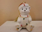 This ornament is small and porcelain. The cub is wrapped in festive Christmas ornaments. This look is perfect for any Christmas tree. -This year my Grandmother Kathy passed away. I am collecting items from her attic that others can put to good use!