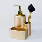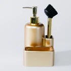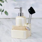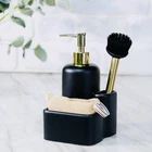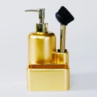 This soap dispenser and sponge holder set is a stylish and practical upgrade for any kitchen or bathroom! The brushed resin finish gives it a sleek, modern look while the anti-slip base keeps it secure. I love how the included brush adds extra functionality—perfect for scrubbing dishes or surfaces. Installation was a breeze with the suction cups, and the quality feels premium. It arrived quickly too! The minimalist design blends beautifully with my decor. Highly recommend for anyone wanting both form and function in their space.