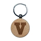 Letter V Uppercase Fun Bold Font Engraved Wood Round Keychain Tag Charm