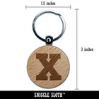 Letter X Uppercase Fun Bold Font Engraved Wood Round Keychain Tag Charm