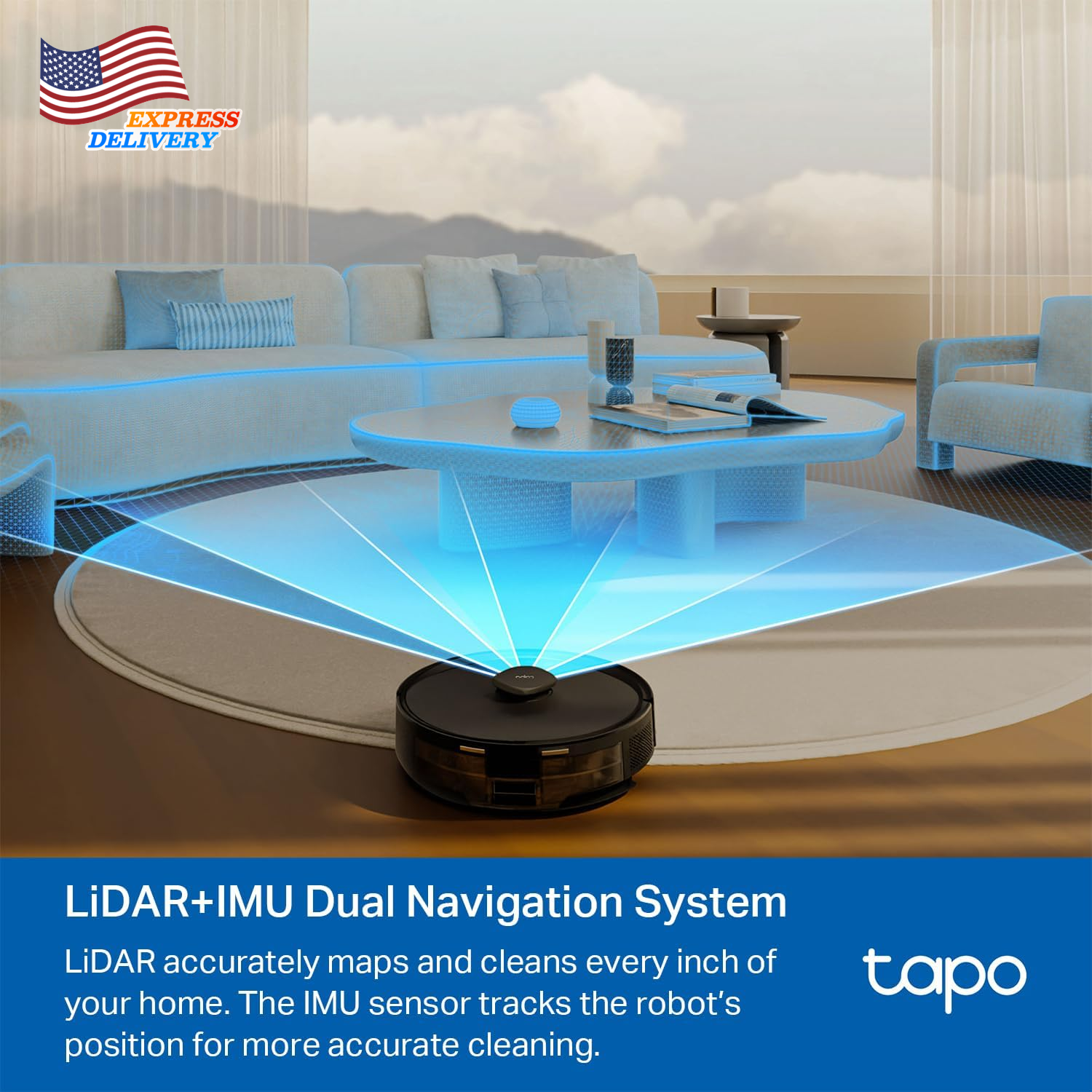 Store New Arrivals Add to Favorite View Feedback Contact Lidar Smart Navigation Robot Vacuum and Mop with Self-Emptying Dock FREE SHIP US Description Style Vacuum w/ Self Empty Dock Are Batteries Included Yes Power Source Battery Powered Control Method App Warranty Description 1 year manufacturer. Battery Life 150 minutes Batteries required Yes Model Name Robot Vacuum Form Factor round Surface Recommendation Hard Floors Controller Type App Control Included Components Robot Vacuum x 1 Item Weight 19.32 pounds Battery Cell Composition Lithium Ion Item Weight 8.78 Kilograms Filter Type HEPA Filter Specific instructions for use Home Automation Special Feature 2-IN-1 Vacuum and Mop with Self Empty Dock, Auto-Docking, Scheduling, Washable Filter, Wet/Dry Color Black Batteries 1 Lithium Ion batteries required. (included) Voltage 110.220 Product Dimensions 13"L x 13"W x 3.9"H ๐๐ณ๐ณ๐ถ๐ฐ๐ถ๐ฒ๐ป๐๐น๐ ๐๐น๐ฒ๐ฎ๐ป๐ ๐ฌ๐ผ๐๐ฟ ๐๐ผ๐บ๐ฒ: Effectively removes dust, pet hair, crumbs, and debris from all hardwood flooring surfaces and low-pile carpet. Activate Ultra mode for up to 5300Pa ultra-powerful suction when extra cleaning power is needed. ๐ก๐ผ ๐ฆ๐ฝ๐ผ๐๐ ๐ ๐ถ๐๐๐ฒ๐ฑ: Utilizes Mesh Grid Technology, a unique grid-like cleaning pattern for thorough coverage, ensuring effective cleaning and preventing missed spots. ๐๐ฎ๐ฟ๐ฝ๐ฒ๐ ๐๐ฟ๐ฒ๐ฎ ๐๐๐ป๐ฐ๐๐ถ๐ผ๐ป๐: Robot increases suction on low-pile carpet to catch hidden dirt and grime and avoids carpeted areas when in mopping mode. Easily add your carpets and rugs on the Tapo app, then set your desired cleaning settings. ๐ข๐๐ฒ๐ฟ ๐ต๐ณ%โ ๐๐๐๐ ๐ฃ๐ถ๐ฐ๐ธ๐๐ฝ ๐ฅ๐ฎ๐๐ฒ: Our DeepVac technology is engineered with an optimized air inlet, an improved cleaning brush, and perfectly positioned air ducts, for superior dust removal and smooth, clog-free airflow. ๐ฆ๐บ๐ฎ๐ฟ๐ ๐๐๐๐ผ ๐๐บ๐ฝ๐๐ ๐๐ผ๐ฐ๐ธ: RV30 Max Plus empties its dustbin automatically after each cleaning, storing debris in a large, disposable 3L sealed dust bag typically lasting for up to 60 days. ๐๐ถ๐๐๐ฅ+๐๐ ๐จ ๐๐๐ฎ๐น ๐ก๐ฎ๐๐ถ๐ด๐ฎ๐๐ถ๐ผ๐ป ๐ฆ๐๐๐๐ฒ๐บ: Advanced LiDAR technology delivers precise 360ยฐ mapping for comprehensive home cleaning. The IMU sensor further enhances navigation by tracking the robot's position for efficient navigation and more accurate cleaning. ๐๐ณ๐ณ๐ผ๐ฟ๐๐น๐ฒ๐๐ ๐๐น๐ฒ๐ฎ๐ป๐ถ๐ป๐ด ๐๐ถ๐๐ต ๐ง๐ฎ๐ฝ๐ผ ๐๐ค+ ๐ฆ๐บ๐ฎ๐ฟ๐: The Tapo IQ+ Smart Cleaning system serves as the robot's brain. Powered by multiple sensors and advanced algorithm, you can reliably leave your home in its hands! ๐ง๐๐ฟ๐ฟ๐ฒ๐ ๐ฆ๐ฒ๐ป๐๐ผ๐ฟ: Equipped with a Turret Sensor that allows for faster and more precise mapping. The sensor also automatically detects areas with insufficient height and backs up to prevent the robot from getting stuck. ๐๐น๐ถ๐บ๐ฏ๐ถ๐ป๐ด ๐๐ฎ๐ฝ๐ฎ๐ฏ๐ถ๐น๐ถ๐๐ ๐จ๐ฝ ๐๐ผ ๐ฌ.๐ด๐ณโโ: The robot can effortlessly climb thresholds up to 0.87โโ, ensuring comprehensive cleaning without missing any rooms. ๐๐ผ๐บ๐ฝ๐ฟ๐ฒ๐ต๐ฒ๐ป๐๐ถ๐๐ฒ ๐ฎ๐ ๐๐ผ๐๐๐ฒ ๐ ๐ฎ๐ฝ๐ฝ๐ถ๐ป๐ด: View a 2D schematic of your homeโs rooms and furniture on the Tapo app. Intelligent algorithms allow for easy customization of room layouts and robot functions with a simple tap. The RV30 Max Plus is a 2-in-1 vacuum & mop combo. It includes Anti-Drop protection, which allows the robot to detect step edges and respond in milliseconds to prevent falls. It also includes a climbing angle of 20ยฐ. There are 5 different suction levels included. The filter is an H11 HEPA. The battery capacity is 2600 mAh. The vacuuming area is 180 m2 and the mopping area is 200 m2. The robot vacuum cleaner also includes Smart Recharge & Resume, where the robot automatically goes to charging dock for recharge and then resumes cleaning from where it left off. You can also set up Virtual Walls and No-Go Zones on app. Place non-furniture items, such as decorative plants or pet beds, that the robot may push. Other features include real-time tracking, 3+1 multi-floor mapping, scheduled cleaning, and breakpoint resumption. The robot provides 3 water flow options for mopping to suit different floor types. The vacuum's included dock has auto dust collection with a suction power of 1700Pa and an included disposable 3L large, sealed dust bag. The robot dimensions are 13 x 13 x 3.9 in. Included in the package is a robot vacuum cleaner, an auto empty dock, a mop cloth mount, a quick installation guide, a washable mop cloth, a 3L disposable dust bag, a main brush, 2 side brushes, a HEPA filter, and a cleaning brush. The wireless connection is IEEE 802.11 b/g/n, 2.4 GHz band only and Bluetooth 4.2 (onboarding only). The robotโs input is 20V / 0.6A. The dock max power is 45 W and the robot rated power is 45 W. The robot vacuumโs filter is washable and reusable. See Quick Installation Guide for instructions on how to clean the filter. This product is great for dog or pet owners who clean up their petโs food, pet hair, and pet treat crumbs. Also great for health advocates, parents, busy professionals, or smart-home enthusiasts. ABOUT US We offer the best prices around on high quality products. Our E-store includes media such as books, movies, music and games while offering electronics, toys, sporting apparel, clothing, tools, general home, garden items and more. SHIPPING We are always working hard to ensure