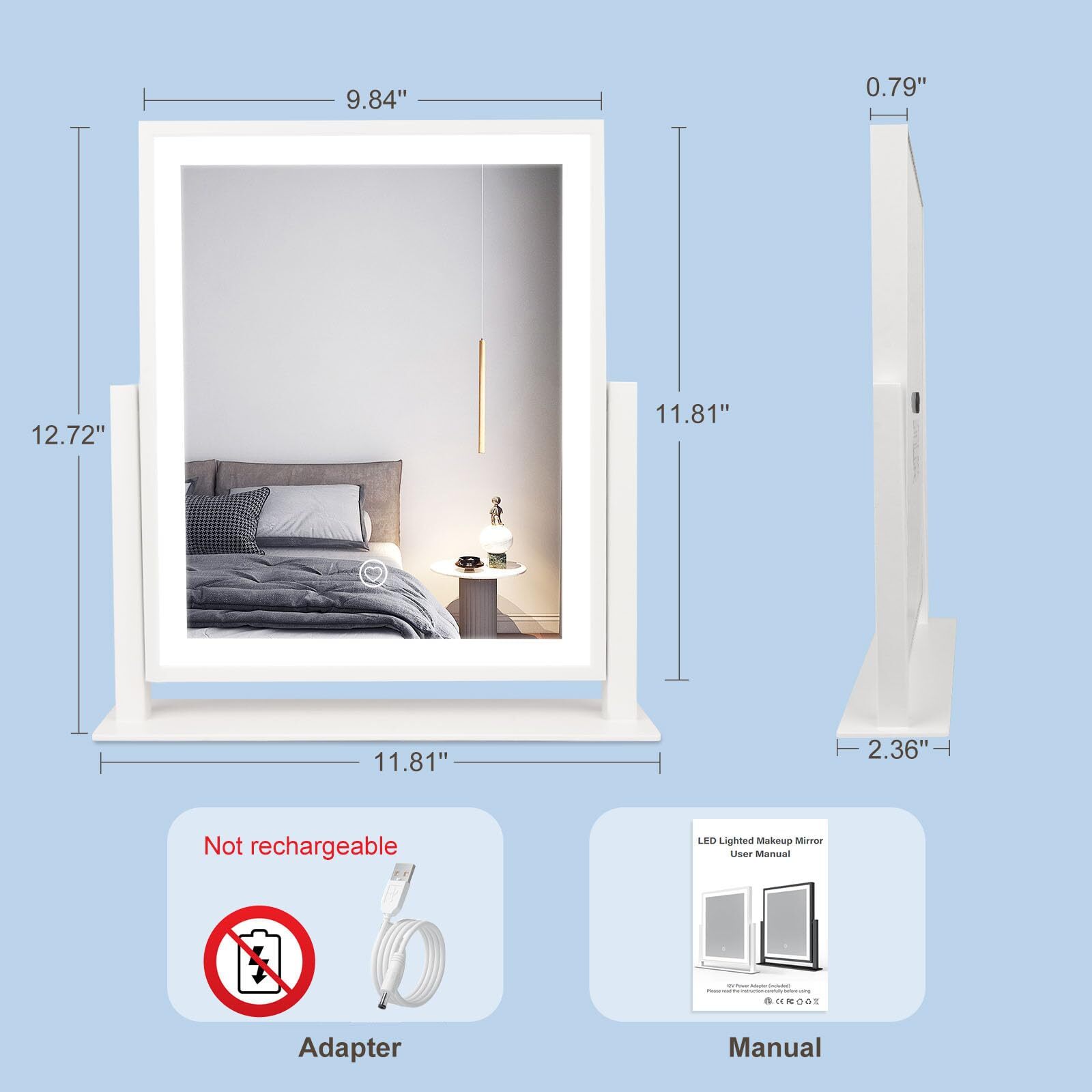 We offer Free Shipping on all order!! Wel come to my stores, The Smart of your choice and satisfaction guarantee. Makeup Mirror with Lights Lighted Up Vanity Mirror with Touch Control 3 Color Lighting Modes Dimmable 360°Rotation for Vanity Desk Tabletop 13Inch Christmas Birthday Gift Gallery Product Description Features 【Dimmable Touch Control】 LED one-button touch to adjust 3 colors (3000K/4000K/6000K) dimming (10%-100%) to make your makeup mirror lifelike without harm your eyes. Long press to change brightness helps you show your beautiful self 【Sturdy Frame & Premium HD Mirror】Lighted makeup mirror is 11"*12.7" with iron frame and base, durable, safe, and reliable; HD environmentally friendly copper-free silver mirror design, higher image clarity, natural and soft light. Our makeup mirror makes makeup and shaving easier 【360°Rotation & 5V Power cord】 360-degree free rotation can fix at any position to give you the perfect viewing angle. The 5v power cord is provided to save you from the trouble of charging (Not rechargeable) 【Perfect Gift 】The lighted vanity mirror can be an elegant decoration for both your bedroom and vanity area. It is the gift for her, Birthday gift, Valentine's Day gift, Mother's Day gift, Christmas gift or for off to college student girls 【Excellent Customer Service】 12 Months ! The mirror comes with customized packaging to protect the mirror in all aspects. If there are any problems when you receive the makeup mirror, please feel free to contact us we will back to you within 24 hours Thank you for your business, your trust and your confidence. It is our pleasure to work with our customers. Delivery ☎ If you have any question. Please do not hesitate to contact us. Please send us message via eBay system. We reply every message within 24 hours. If you did not receive our reply. We think maybe we did not receive your message. Please send us message again. Payment Policy ❤ Payment managed by eBay. Shipping Policy We only send the item according to the address on Ebay, the address can't be changed once we pack the item. Please double check your shipping address it before your send the payment. It should take 3-5 business days for the product to reach your destination. If the product doesn't reach your destination within the time limit, please give it an additional 1-2 business days in case of postal delays and/or possible technical issues. We use a selection of shipping services such as UPS, FedEx, USPS etc. We ship only to the 48 contiguous states of America. We do not ship to Hawaii, Alaska, US Protectorates, APO/FPO addresses and PO Boxes. Local pickups are not offered. If it takes any longer than that, please do not hesitate to contact us to resolve the issues. Feedback ❤ We take our reputation seriously, we buy and sell online, so we understand the value of trust. If you are unsatisfied with your order, please contact us and we will work with you to resolve it to your satisfaction. Return Policy - This product comes with 30-Days Money Back Guarantee. - If you receive an item and it doesn't work properly or you don't like it because of any reason at all. - We have a 100% refund/return policy. We will ship you a new item or refund your money for the full sale amount. - For all returned products, buyers MUST contact us for the returning address.