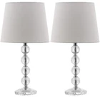 Artful faceting adds glamorous brilliance to any room the elegant Nola stacked crystal ball table lamp inhabits. Crafted in the traditional style of European glassmakers, the crystal looks fresh and new in its arrangement and design. An updated round white Geneva shade completes the look. Cord length 61 inches. Illuminate your living space with a stunning table lamp set from 's lighting collection Features 4 stacked crystals with a chrome finish and off white polyester shade CFL bulbs are included for convenience and added efficiency This table lamp set works beautifully by the bedside on a nightstand, console table, in the home office, living room, or dining area has been a trusted brand in home furnishings for over 100 years, providing quality craftsmanship and unmatched style