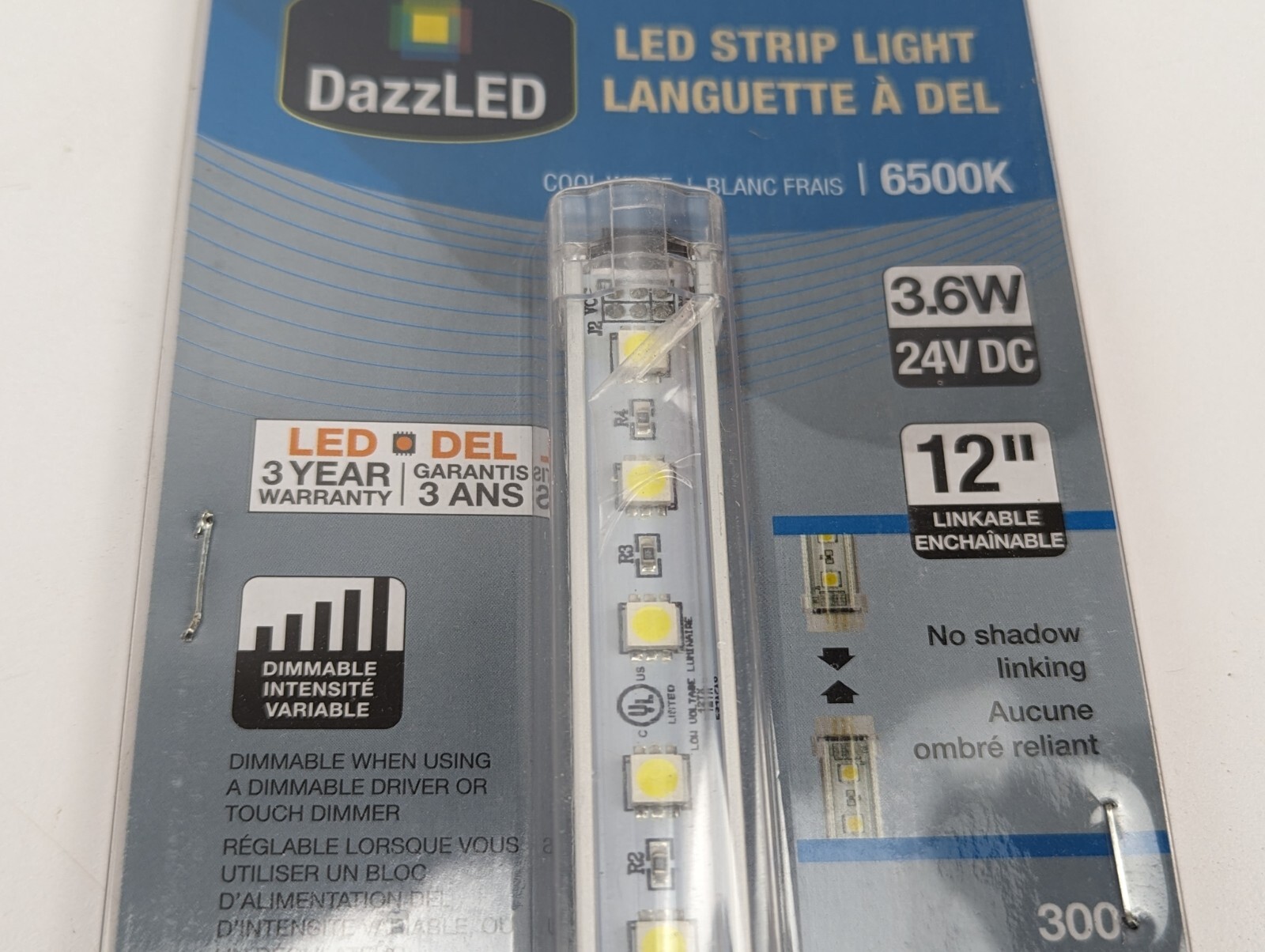 Liteline DazzLED LED Strip Light, Cool White 6500K 12" Indoor *NEW* 3.6W, 24V DC 24V LED Driver is required *NOT INCLUDED!*