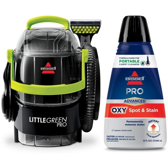 BISSELL® Little Green® Pro Portable Carpet Cleaner uses a combination of superior suction, scrubbing action and specially formulated BISSELL® cleaning solutions to remove spots, stubborn stains and embedded dirt for professional style results. This compact, 13-pound machine is easy to take to hard-to-reach areas, so you can remove spots and stains from carpets, area rugs, stairs, upholstery, auto interiors, and similar soft surfaces. It comes with a Deep Stain Tool, 4” Tough Stain Tool and a trial-size bottle of PRO MAX Clean + Protect formula to permanently remove tough pet stains. This machine helps save pets, too! Every purchase makes it possible for BISSELL to continue our support of BISSELL Pet Foundation® and its mission of saving pets in need REMOVE STUBBORN PET STAINS & EMBEDDED DIRT. Combines superior suction, scrubbing action and professional cleaning formula for your best cleaning results. Superior Suction. Combines with scrubbing action and professional cleaning solution to remove stubborn pet stains, embedded dirt and more. Professional Style Results. Provides a deep clean that leaves you with a clean you’d get from the pros. Powerful StainProtect® Technology. Permanently removes tough stains and protects against future messes. Tools & Formula Included. Comes with a Deep Stain Tool that delivers formula deep into the carpet fibers to lift and remove pet messes, a 4” Tough Stain Tool and an 8-ounce trial-size PRO MAX Clean + Protect Formula