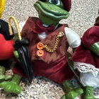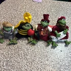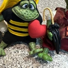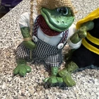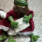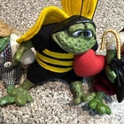 Lot of 4 Russ Berrie frogs featuring Honeycomb, Leopold, Lily, and Country Fishing Frog. These figurines are part of a collection of frog species, including frogs like Honeycomb and Leopold. Each figurine represents a different frog character, adding charm to any amphibian or reptile collection.