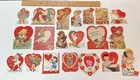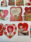 We have for sale a lot of 20 vintage valentines. They are from the 1940s/50s and are in used condition. They feature sweet little girls all trying to entice a valentine. 15 of them say "Made in the U.S.A." and two of them say "Made in Canada". Companies include Sunny Lane, Erco Candies, A-meri-card, and Carrington Co. All are inscribed; 5 are inscibed with the date: 1943, 1944, 1946(3). These are not in perfect condition- which is to be expected in valentines that are 80+ years old- again all have written inscriptions, there are creases, remnants of folded tape/areas where looks like tape has been removed, etc.,...but so charming! Please look at all pictures and ask questions before purchasing. Thank you!