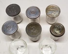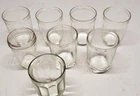 Lot of 8 Vintage Jelly Glass 8 oz Canning Jar 6 with Tin Metal Lids. Lids are -- 3 Hazel Atlas, 1 Plain, 1 Kerr and 1 screw top Atlas, some rust on tops. No Reserve